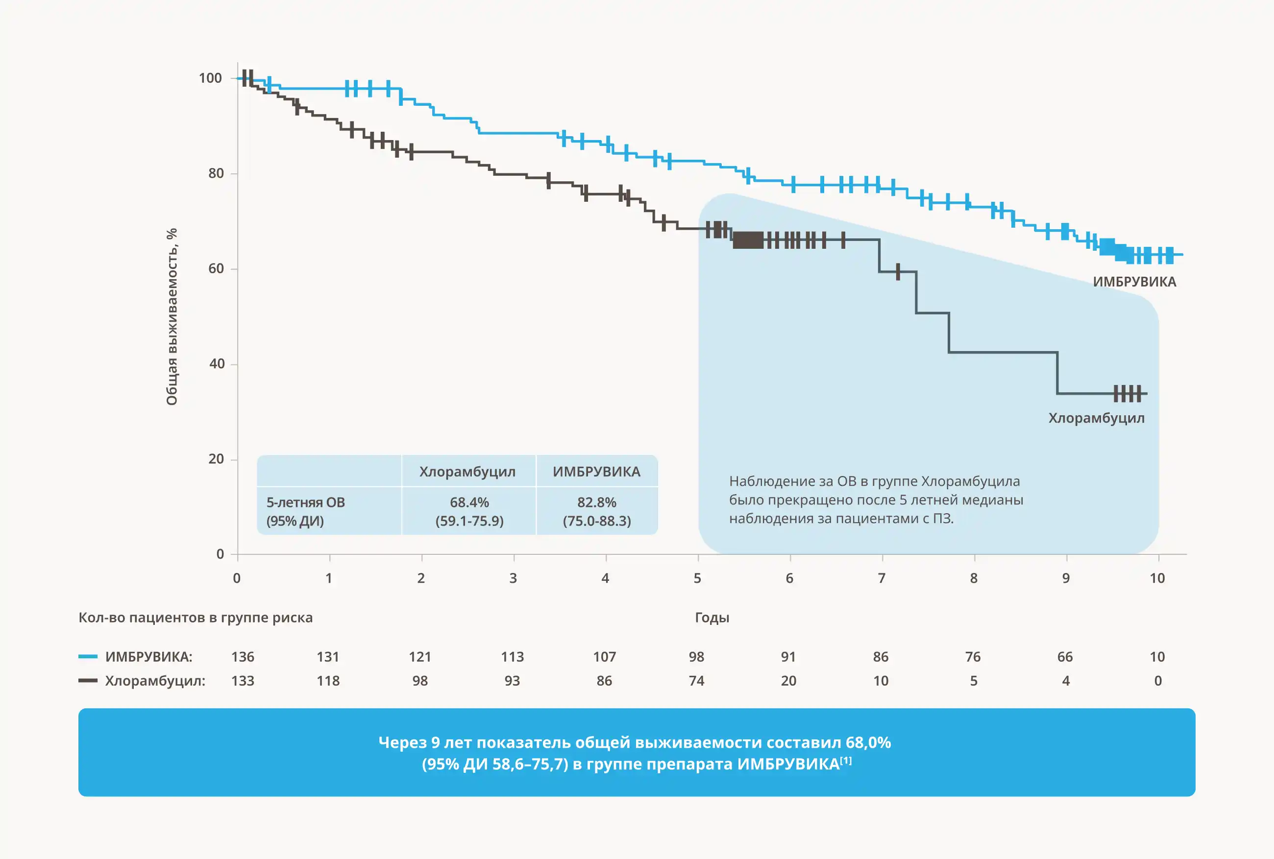 Препарат ИМБРУВИКА — единственный новый таргетный препарат, демонстрирующий устойчивую ОВ продолжительностью до 9 лет2
